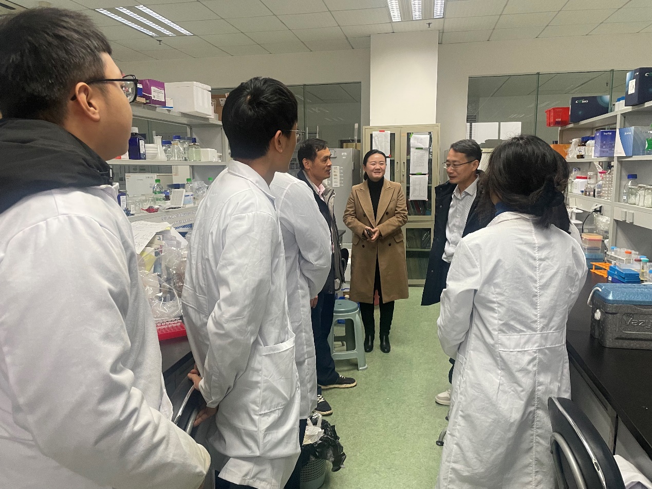 黄开勇书记来到实验室,与留校学生亲切交谈,深入了解关心留校学生的学习生活情况及需求,勉励同学们要科学合理规划时间,劳逸结合,利用寒假时间不断充实和提升自我,叮嘱同学们要严格遵守学校、学院的相关管理规定,注意假期安全,特别是实验室安全与外出人身安全,要多与家人、亲友、老师联系,度过一个平安、欢乐、充实的新春假期。