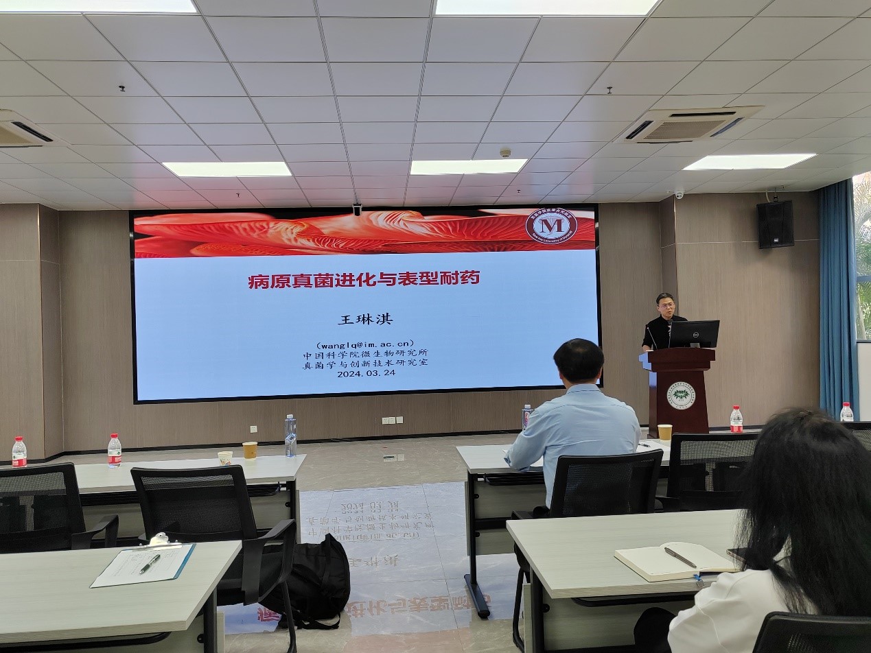 王琳淇研究员作了题为“病原真菌进化与表型耐药”的学术报告,围绕为何环境来源的真菌能够感染人类提出了环境病原真菌的三个中心科学问题:病原真菌共性与特化环境的适应机制;环境适应策略如何驱动感染和耐药;环境适应机制解析如何指导靶点发现和防控策略研发。从三个中心科学问题展开研究并得出以下结论:1.在真菌感染过程中,持留细胞可在体内形成,抵御两性霉素杀伤;2.持留细胞具有健全的再感染能力;3.麦角硫因特异性促进了药物持留,该机制在不同真菌中保守;4.老药新用策略可以有效清除两性霉素持留细胞的药物。
