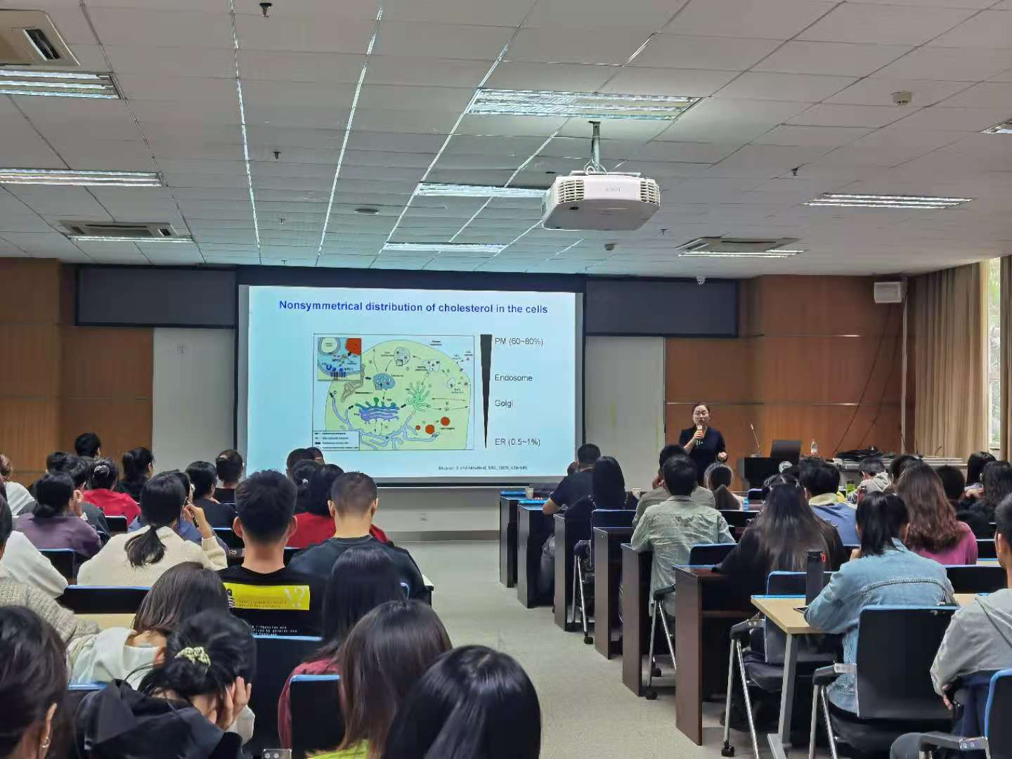 2020年11月15日下午,优秀校友褚贝贝教授应邀来我院做题为“ 脂质代谢参与动物病毒增殖的分子机制”的学术报告,报告吸引了生命科学与技术学院和动物科学技术学院的师生参加。该报告学术成果发表在Cell杂志上,被评为2015年度中国科学十大进展之一。报告会交流期间,学生踊跃提问,褚教授一一解答。报告会后,褚教授以自己的亲身经历,激励学生一定要有科学精神开展科研工作,勉励学生要将“今天我以西大为荣,明天西大以我为荣”牢记在心。最后,李有志常务副院长对褚教授的发言做了总结,也对褚教授的精彩报告表达了感谢,同时希望同学们以褚教授为榜样,学习她“傲气”的优秀品质,努力学习,认真钻研,成为适应现代化要求的领军人才。