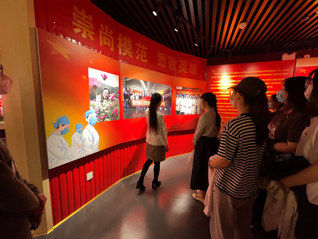 纪念馆入口便是梁小霞烈士的铜像,她微笑着立在此处,仿佛未曾离开自己的岗位,党员驻足于此,静静感受其不灭的精神。纪念馆一共分为“请缨战武汉”、“英雄归故里”、“不负少年时”、“放飞天使梦”、“长存天地间”、等7个部分,展览了百余件梁小霞烈士的遗物。聆听着讲解员饱含深情的讲解,面对着百余件遗物立体展开的烈士绘卷,一个坚守初心、逆行出征、不畏艰险、勇于奉献、大爱无疆的英雄形象跃然于眼前。