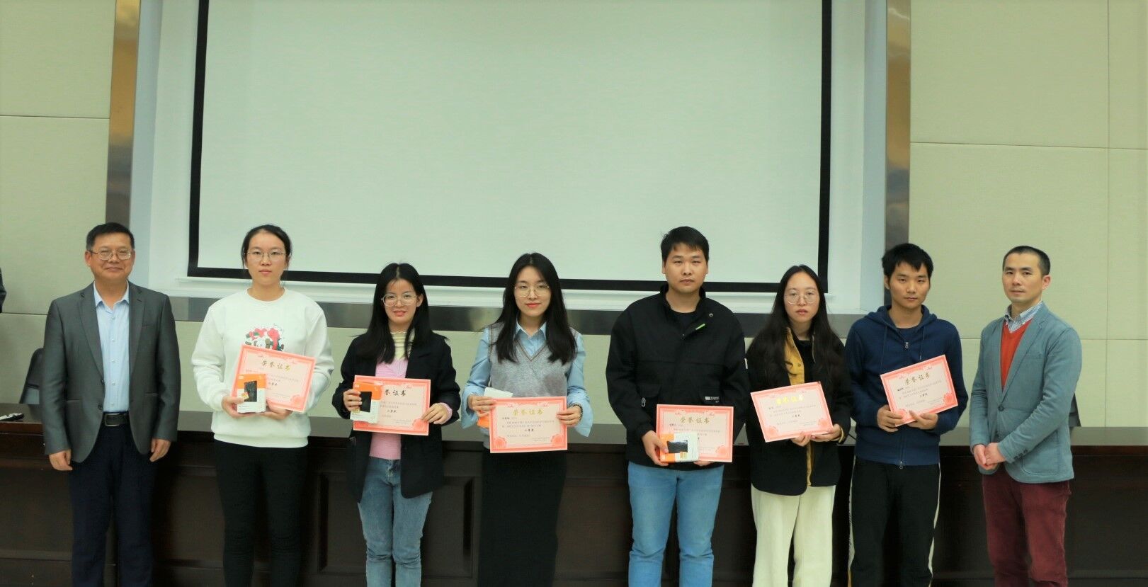 张教授、冯教授和获奖同学合影留念