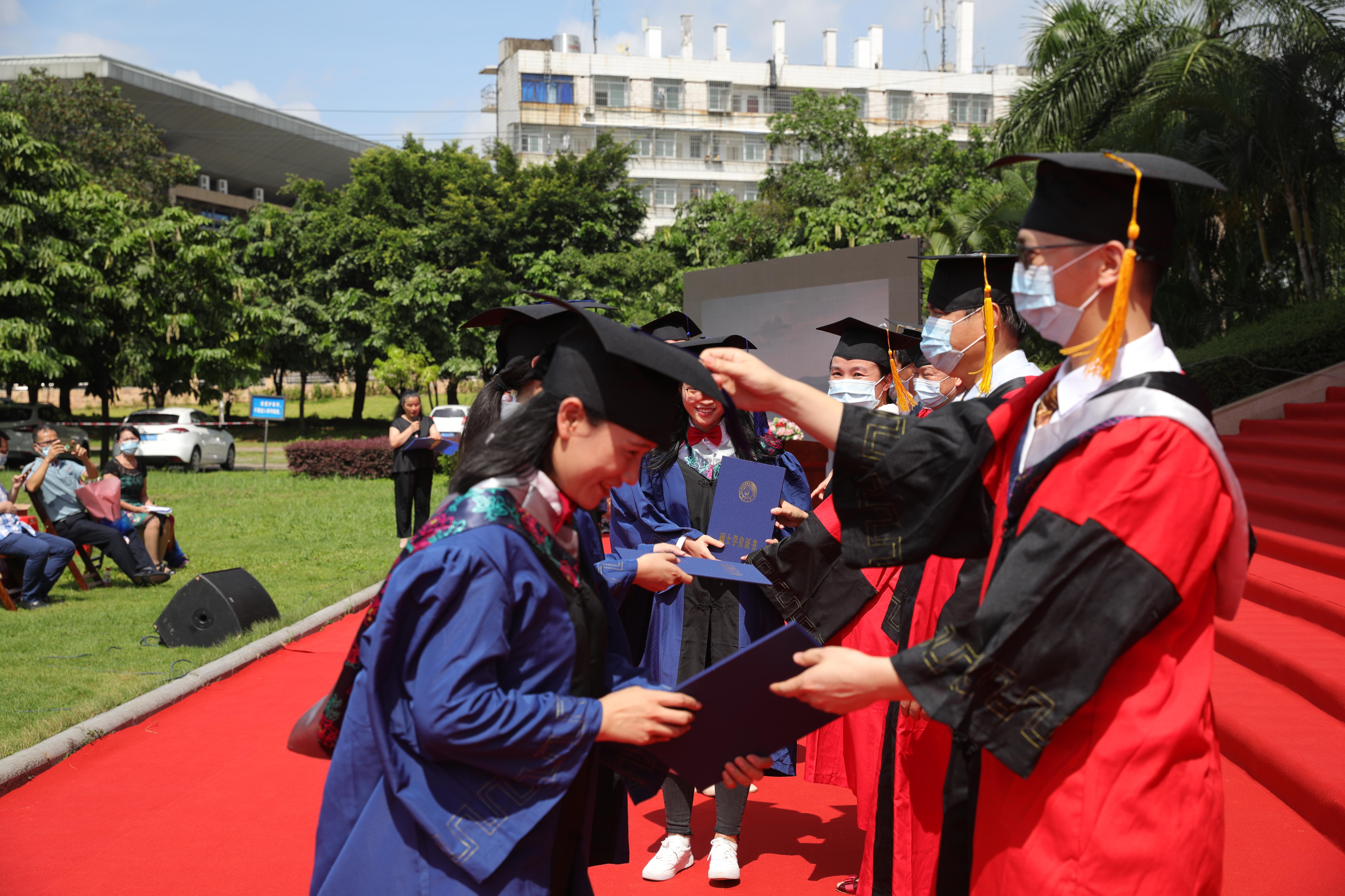 6月22日,广西大学2020届毕业典礼暨学位授予仪式如约举行,在汇学堂设典礼主会场的同时,还在各学院设立了143个分会场。生命科学与技术学院分会场在学院大楼前的草坪举行,是我院首次举办户外毕业典礼暨学位授予仪式。学院党委副书记曾海艳主持典礼,全院103名毕业本科生、65名毕业硕士研究生和部分导师、家长参加了本次典礼。
