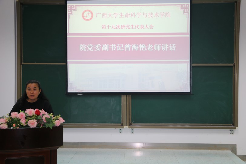 10 月 16 日上午,我院第十九次研究生代表大会在学院 106 教室举行。本次大会是在全国上下深入学习贯彻习近平总书记在庆祝中国共产党成立100周年大会上的重要讲话精神,开启全面建设社会主义现代化国家新征程的背景下召开的,主要任务是选举我院第十九届研究生会主席团成员,确定今后的发展方向和任务。出席本次大会的有院党委副书记曾海艳老师、院团委书记周嫱老师、院学工组马奕老师、俸雪老师、广西大学校研究生会代表,兄弟学院研究生会代表以及我院各班级代表与学生会各部门代表。大会由学工组俸雪老师主持。
