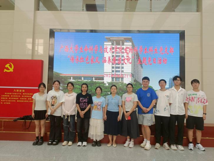 为推动党纪学习教育走深走,2024年6月21日,ylzz总站线路检测中心生物科学本科生党支部师生党员一行赴广西壮族自治区档案馆开展“传承红色家风,涵养廉洁文化”主题党日活动。