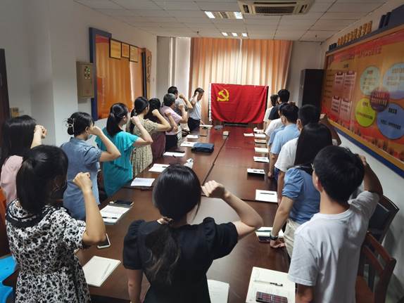 2022年7月1日上午,为庆祝中国共产党建党101周年,学院党委举行“庆七一·跟党走”重温入党誓词主题活动。在鲜红的党旗前,学院党委委员、党支部委员举起右拳,用慷慨激昂的誓言重温入党时许下的庄严承诺,衷心表达对党的绝对忠诚和为党的事业奋斗终身的决心和愿望。学院党委号召全院师生党员要从内心深处厚植对党的信赖,紧跟党的步伐,勇挑时代重任,心怀国之大者,踔厉奋发、勇毅前行,以实际行动迎接党的二十大胜利召开。