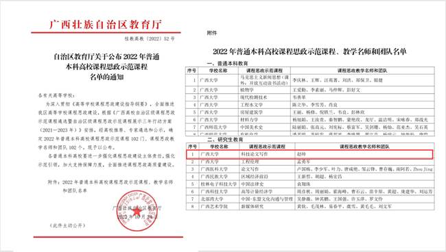 近日,自治区教育厅公布了2022年普通本科高校自治区级课程思政示范课程名单,我院《科技论文写作》课程被认定为自治区级课程思政示范课程,赵帅老师被认定为自治区级课程思政教学名师。