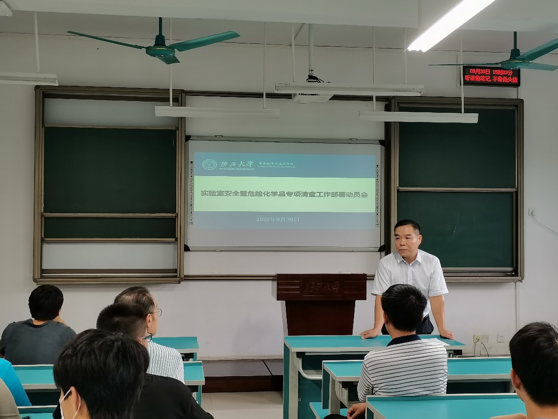 覃健强副院长就近期实验室危险化学品安全检查中发现的问题进行了通报,要求各实验室立即开展危险化学品安全隐患自查自纠专项工作,全面清查是否存在危险化学品不按规定存放的情况、全面清查危险化学品的名称数量,排除安全隐患。