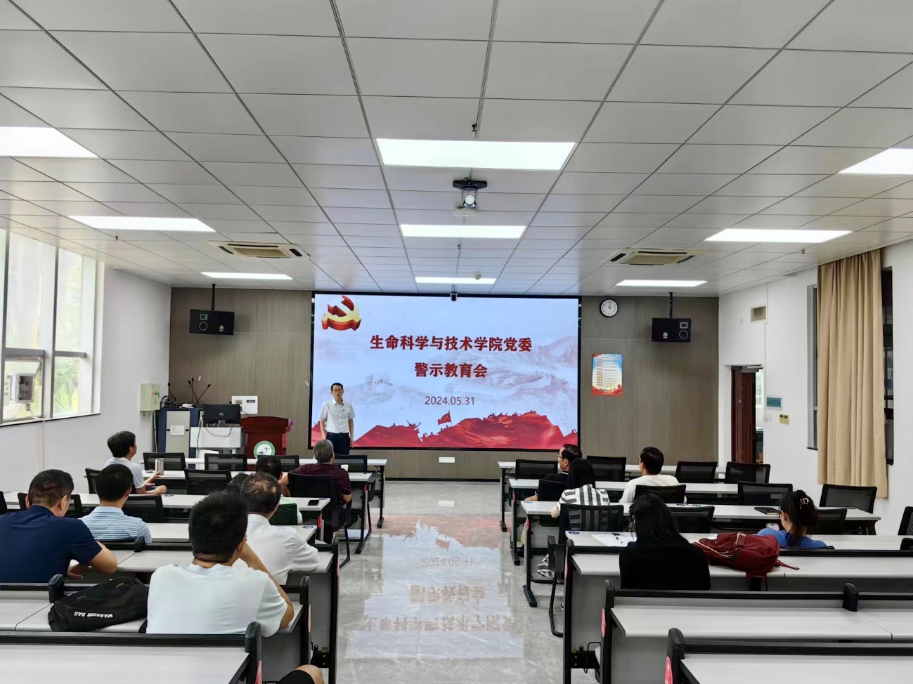 5月31日,学院党委在106室召开警示教育会。全院教工党员参加会议。学院党委组织委员马奕主持会议。