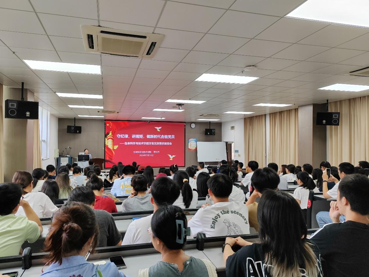 学院党委副书记、纪委书记覃文月以《守纪律、讲规矩,做新时代合格党员》为题作警示教育报告。覃副书记深刻剖析了一些学生党员违反校纪、触犯法律的典型案例,希望同学们以案为戒,严以律己。她指出,作为新时代的学生党员,要始终做好“三个表率”:一要做学纪知纪的表率,始终坚守政治信仰、坚定理想信念、严守政治规矩,当好坚定拥护“两个确立”、践行“两个维护”的排头兵;二要做明纪守纪的表率,严格对照党章,将遵守党规党纪、法律法规、校纪校规作为日常行为的准则,不断磨砺个人品格,塑造良好的道德品质;三要做担当作为的表率,争做学习标兵、科研标兵,以高度的责任感和使命感,共同营造一个风清气正、积极向上的育人环境。