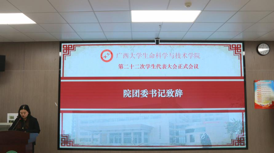 院团委书记马奕在会上致辞,她表示本次大会旨在推动学院学生会不断发展和完善,为同学们提供一个学习和成长的舞台,希望大家要树立远大理想,担当时代责任,以饱满的热情为师生服务,以昂扬的斗志砥砺奋进、开拓创新,书写生科学院学生会工作的新篇章。