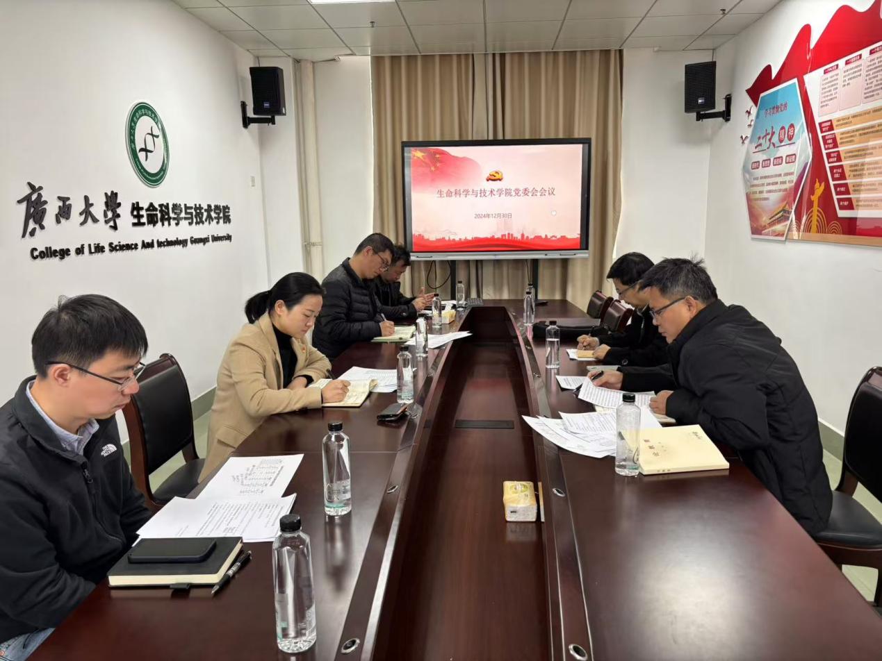 会议还具体研究和部署了学院党的建设、安全稳定等专题工作:审批通过2024年下半年新发展党员名单、预备党员转正名单、各支部关于补选党支部委员会委员结果的情况报告;审议通过2024年度生命科学与技术学院党委领导班子和党员领导干部民主生活会工作方案;安排部署关于开展岁末年初实验室安全隐患大排查等工作。