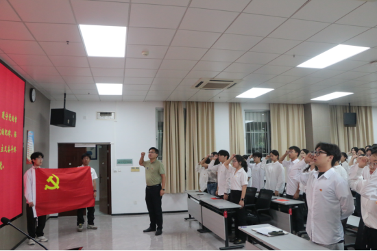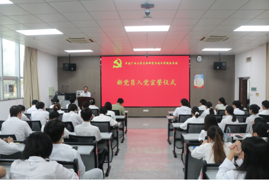 为庆祝中国共产党成立104周年,7月1日,我院在106教室隆重举行新党员入党宣誓仪式。学院党委书记刘培军、新党员及2025年春季学期入党积极分子培训班学员参加,专职组织员韦世栋老师主持大会。